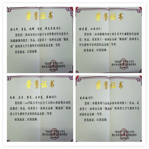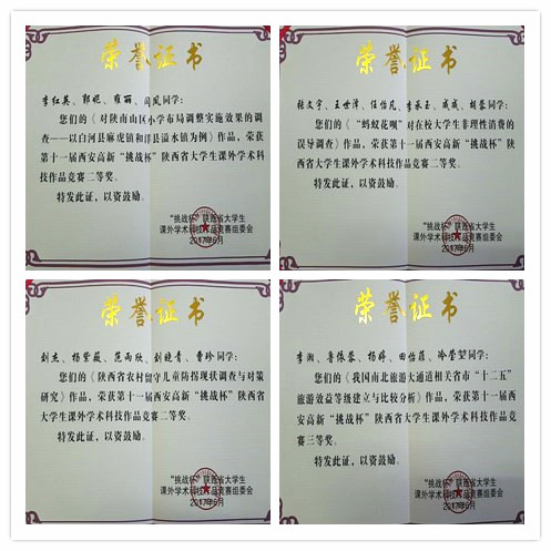 6月12日,由团省委、省教育厅、省科技厅、省学联、西安高新区管委会、省科学院、省社科院共同主办的第十一届西安高新“挑战杯”陕西省大学生课外学术科技作品竞赛在西安邮电大学长安校区落下帷幕,我校共有8件作品获奖,其中获二等奖4项、三等奖4项。