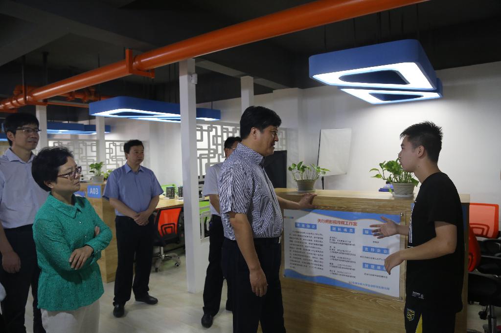 王厅长一行参观了创客空间、大学生创业实践区,对孵化园的功能布局、项目孵化流程、创业项目团队入驻、创业项目开展等情况做了实地了解。招生就业处处长丁义国对近年来我校大学生创新创业教育工作开展情况及取得的成效做了介绍。