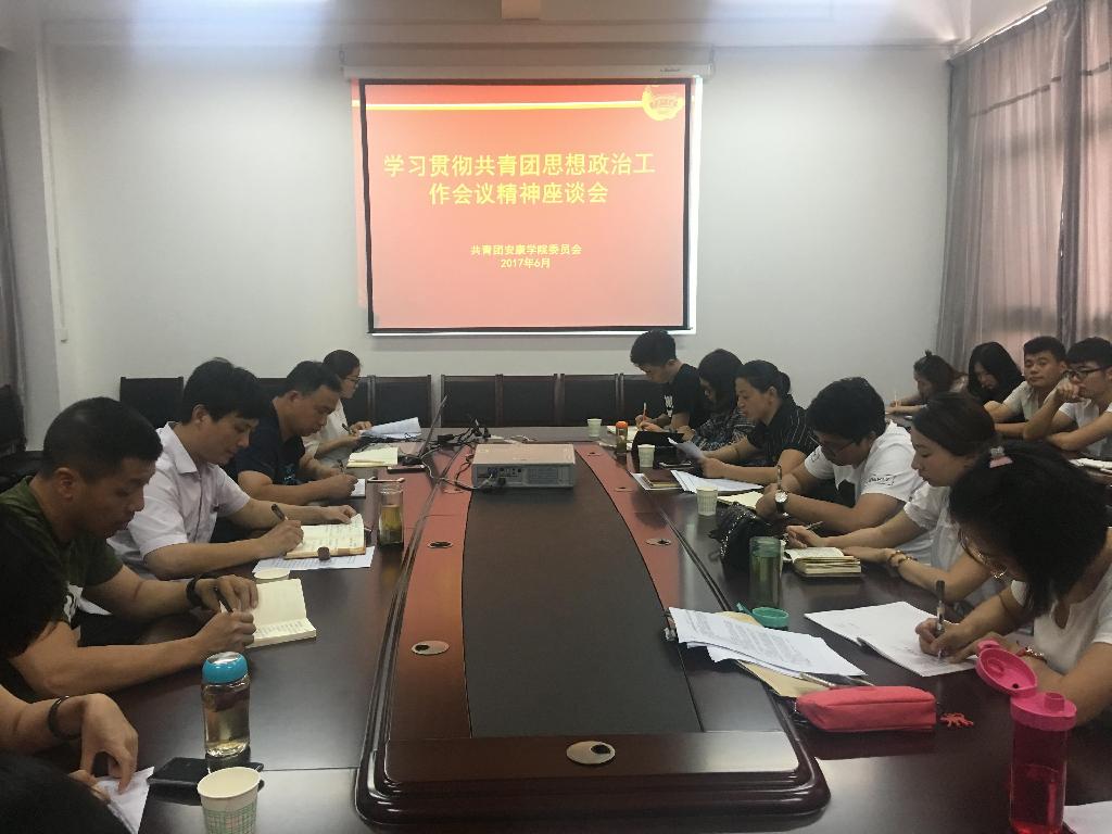 6月16日下午,我校在图书馆六楼陕南民间文化研究中心会议室召开学习贯彻共青团思想政治工作会议精神专题会。校团委全体成员,各二级学院团总支书记、副书记,校学生会主席团成员参加了专题会。会议由校团委副书记李光梓主持。