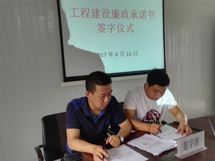 会上,基建处处长王永东代表基建处、计财处副处长刘从兵代表计财处分别向企业宣读了廉洁承诺书,两家企业的项目负责人也分别代表各自企业向学校宣读了承诺书。基建处内部科室负责人与部门责任领导签订了党风廉政建设责任书。
