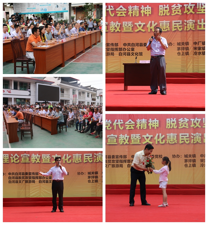 文艺演出、送文化下乡,是我校与白河县文化馆结对帮扶21号助力扶贫项目的主要内容,这已经我校是第2次深入白河县开展文化帮扶活动,活动现场,田川、杜恩波用深厚扎实的艺术表演丰富了群众的文化生活,感染了现场观众,并与其他多项活动共同形成了一场弘扬“脱贫致富”、“追赶超越”的精神文化大餐。
