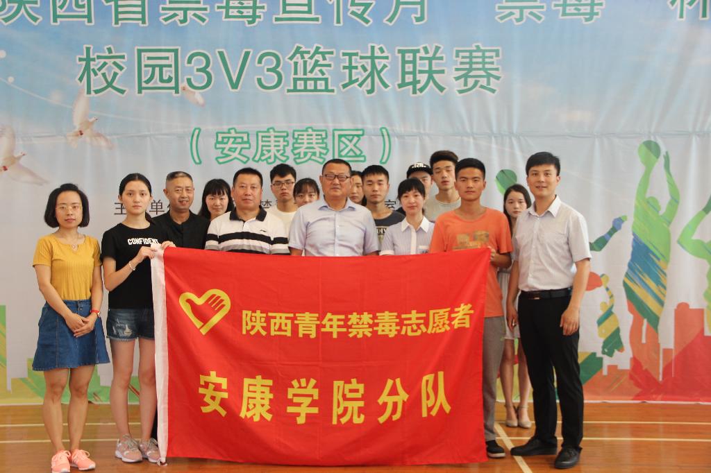 6月24日上午,由省禁毒办、省委高教工委、省教育厅主办,安康市禁毒委员会办公室承办的2017年陕西省禁毒宣传月“禁毒杯”校园3V3篮球联赛在我校江南校区体育馆举办。活动是落实省禁毒办、省委高教工委、省教育厅的决策部署,全面加强青少年毒品预防教育宣传工作的重要举措,也是增强青少年学生身体素质,进一步提高广大青少年学生识毒、防毒、拒毒意识,弘扬健康积极向上的青春正能量的有效途径。安康市公安局禁毒支队队长谭简、副支队长邝勇,市教育局安全科邹科长,我校体育运动委员会秘书长、体育学院院长冯德学,保卫处处长张文华,团委副书记李光梓,政社学院禁毒宣传专题教师李朴及我校“无毒青春”大学生志愿者禁毒宣传专项社会实践团队,各裁判员及各学段(初中、高中、高校)篮球代表队参加了开赛仪式。