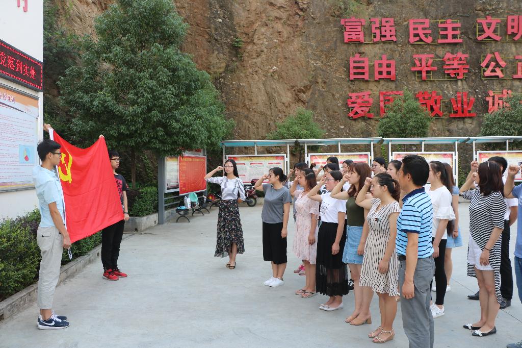 6月26日上午,同学们在党总支书记张立虎、副院长储玖琳、韩勇博士、学生党支部书记王晓的带领下来到省先进基层党组织、汉滨区党性教育基地——汉滨区瀛湖镇天柱山村党支部开展“牢记宗旨,坚守信念;不忘初心,继续前进”的上党课及主题党日活动。天柱山村党支部第一书记唐振、大学生村官江瑾文同志接待了大家,并进行了全程讲解。