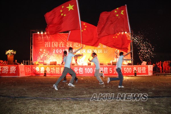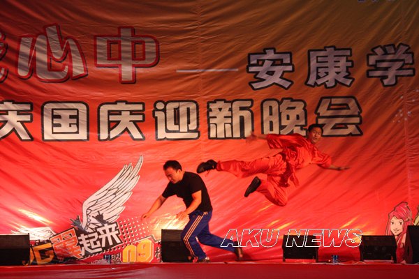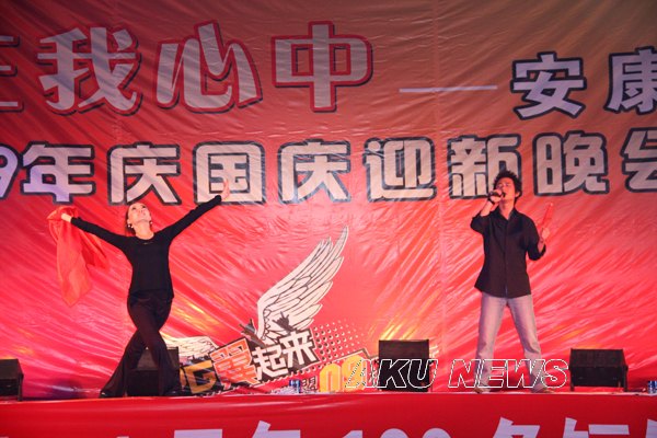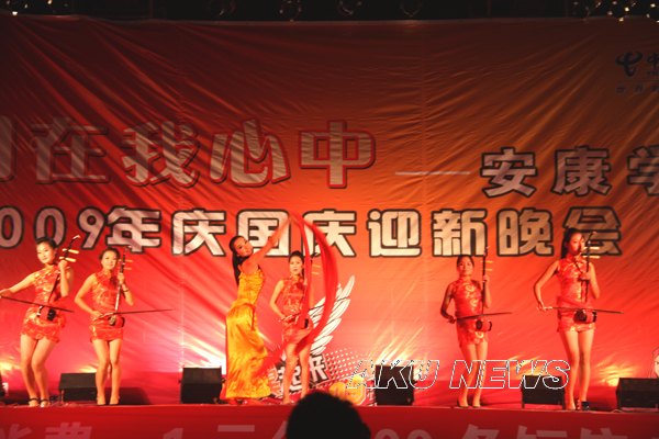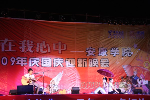 9月27日晚,由学院团委、学生会主办的以“祖国在我心中”为主题的“安康学院2009年庆国庆迎新生歌舞晚会”在我院东校区运动场举行。