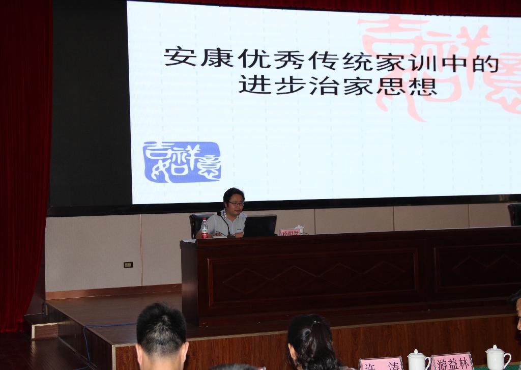 7月21日,安康学院文学与传媒学院青年教师杨明贵赴白河县,为该县200余名干部作了题为《安康优秀传统家规家训中的进步治家思想》的讲座。此次讲座是我校结对帮扶贫困县实施文化帮扶工程的系列活动之一,旨在将地域人文精粹融入脱贫攻坚战役和推进新民风建设之中。