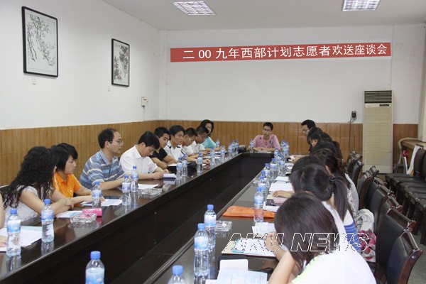 七月, 骄阳似火,却也是播撒汗水、收获喜悦的时节。7月2日上午,学院在东校区大会议室召开2009年西部计划志愿者座谈会。学院党委副书记胡鸿晓教授出席座谈会并作讲话,即将奔赴西部计划志愿服务岗位的30名毕业生参加了座谈会,座谈会由团委副书记鲁延安主持。
