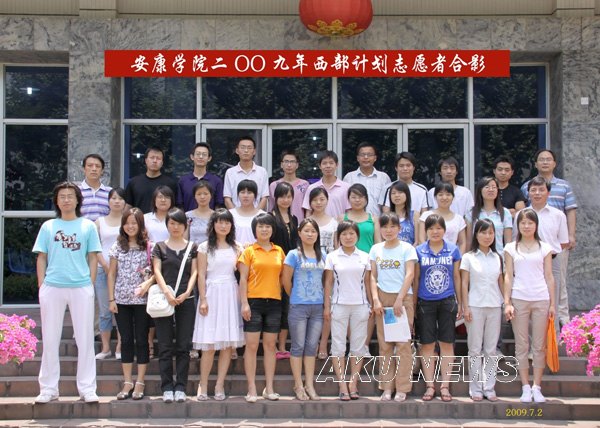 今年我院招募的志愿者人数多、任务重,学院团委按照团省委2009年西部计划志愿者的通知,制定了宣传动员和选拔方案,在各系团组织的广泛宣传、积极动员、层层选拔下,推荐了30名综合素质较高的毕业生服务西部计划,这也是安康学院学子学以致用回报社会的实际行动。