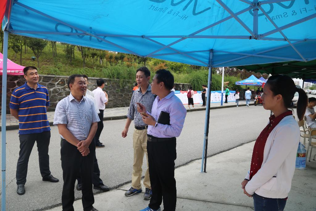 闵小平带领相关部门负责人在江南校区查看了文传学院、数统学院等6个二级学院的新生报到接待点及缴费处、绿色通道、军训服发放点等;胡波一行赴江北校区检查了电信学院、经管学院等6个二级学院的新生报到接待点以及联合办公点、1号教学楼等。在江南、江北两个校区,闵小平、胡波还分别与已经来校报到的新生及家长进行了亲切交谈,询问他们对学校的印象、来校后的适应情况等。