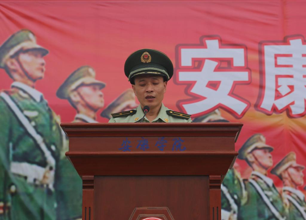 武警陕西某部教导员王浩少校作了军训动员,他向即将参加军训的2017级新生表示热烈祝贺,希望广大新生学习部队优良传统,同时要求承训官兵科学组训、正规施训,确保质量和安全,高标准的完成军训任务。