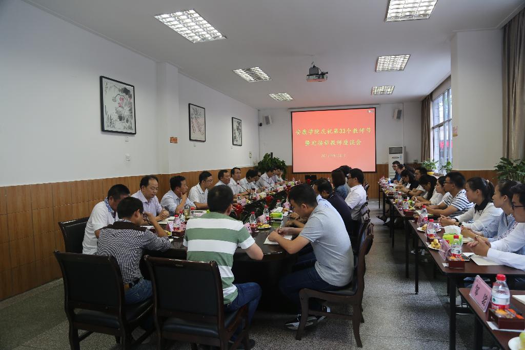 在第33个教师节来临之际,我校在江南校区第一会议室召开了庆祝教师节暨迎接新教师座谈会。校党委书记王国良、校长陈刚、校党委副书记胡波出席会议;党政办、教务处、科研处、人事处、后勤保障处、工会等职能部门负责人,办学顾问代表、教师代表、2017年新进教师及学成回校博士40余人参加会议。胡波主持会议。