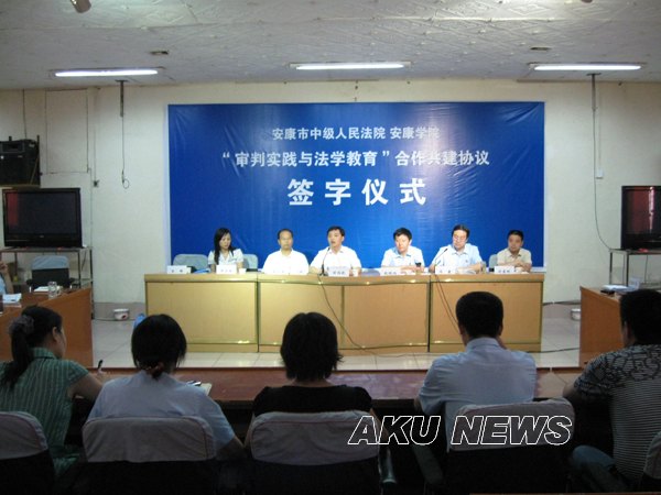 为了切实增强高校法学教育的实践性和针对性,进一步推进学习型法院创建工作,7月7日下午,安康学院与安康市中级人民法院在安康中院会议厅隆重举行了共建法学教育和法治教育实践基地签约和揭牌仪式。安康学院党委副书记胡鸿晓,政史系党总支书记谢安国,政史系副主任吴亚娥,安康中院常务副院长赵晓旭、副院长冯康和政治部主任刘来刚出席了仪式,安康中院“天平”青年读书社的青年法官参加了仪式。仪式由安康中院副院长冯康主持。