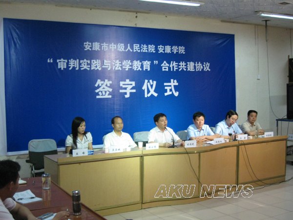 安康中院赵晓旭副院长就切实加强双方合作共建作了讲话。他强调,安康中院与安康学院建立“审判实践与法学教育”合作共建关系,既是中院党组加强法院文化建设的必然措施,也是青年法官干警渴求读书学习的结果。他明确表示,市中院将认真履行双方协议中确定的义务,积极为履行协议的各项工作提供政治、组织和人才保障,也希望中院研究室加强与安康学院政史系的联系和沟通,发挥重要组织协调作用,保证协议书确定的各项工作设想落到实处,确保双方合作发挥实效、结出硕果。