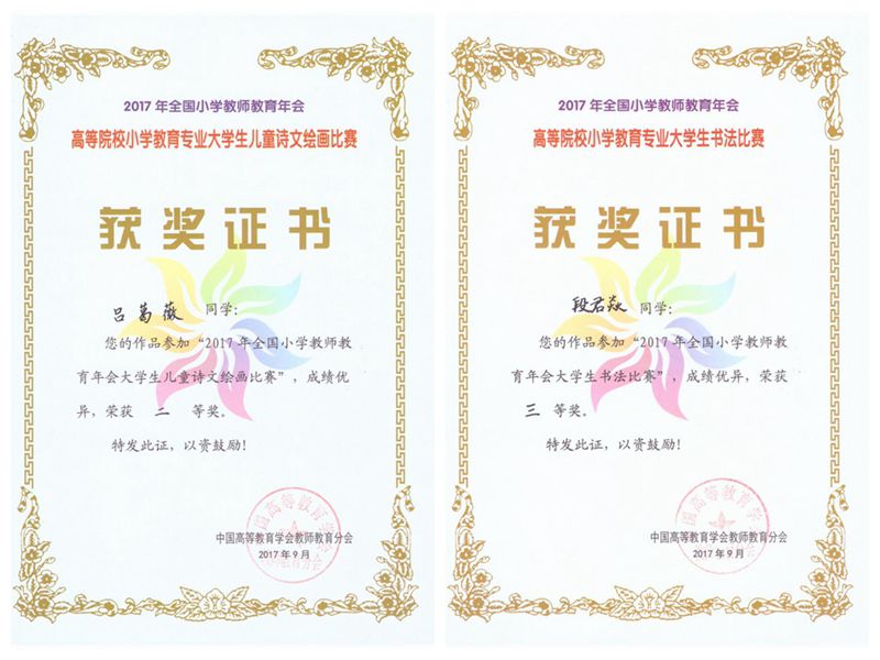 这也是我校首次参加高等学校小学教育专业大学生“儿童诗文绘画”及“书法”作品展并取得良好成绩。