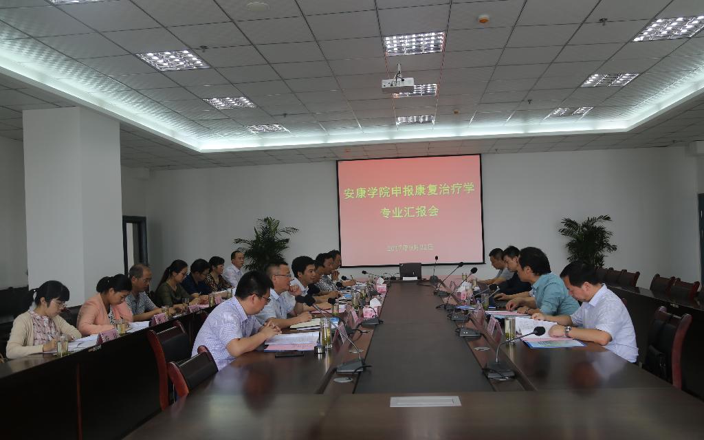 我校申报设置康复治疗学专业评估汇报会在江北校区逸夫科技楼九楼会议室举行。校长陈刚,副校长钟生海,市卫计局副局长杨彬,校附属医院、市中心医院院长茹甫毅,校教务处处长余谦,政社学院院长何家理及承担康复专业教学任务的教师等参加了评估汇报会。会议由黄斌主持。