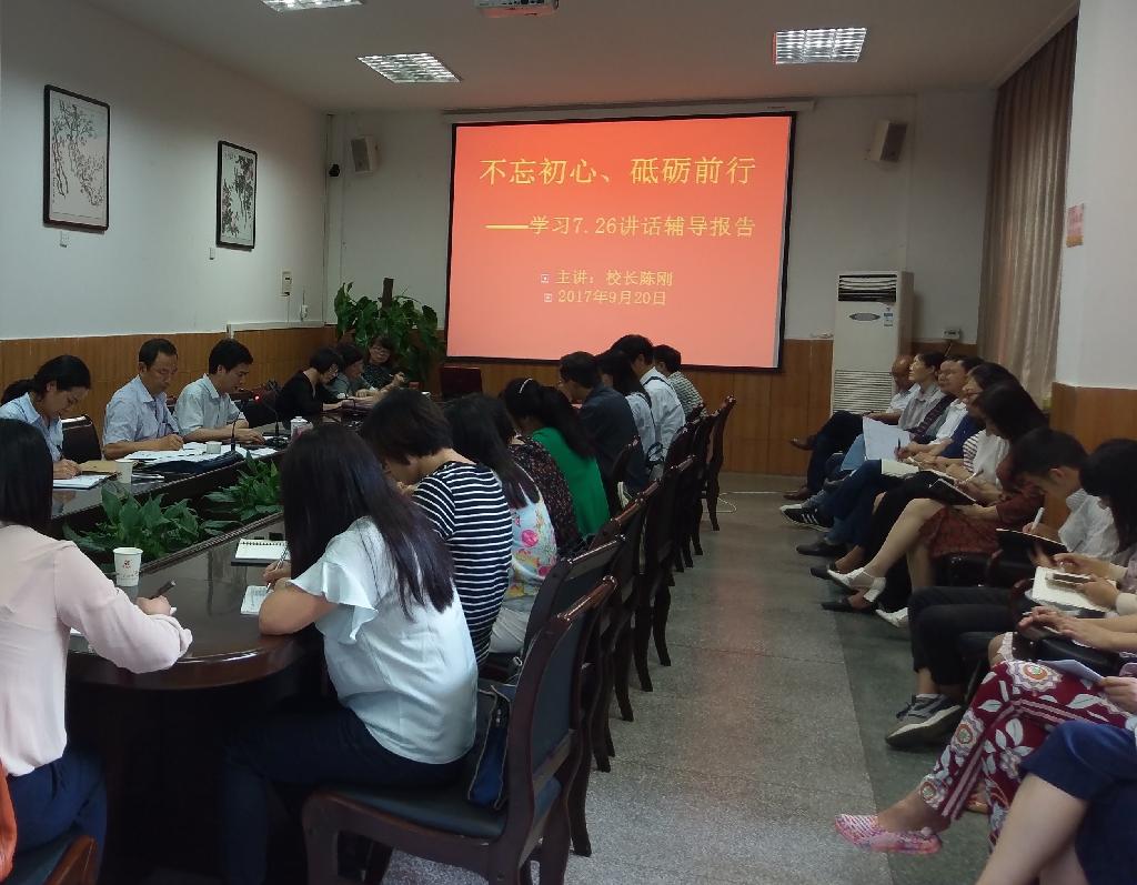 9月20日下午,校长陈刚在江南校区第一会议室为政治与社会发展学院全体教师作了题为《不忘初心、砥砺前行——学习习近平同志7.26讲话精神》的专题辅导报告。政治与社会发展学院全体教职员工参加了辅导报告会。报告会由政治与社会发展学院院长何家理主持。