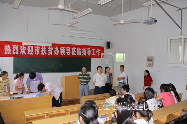 8月4日下午,安康市扶贫办副主任曾忠文、纪检组长任卫莉、扶贫开发科长刘善美、蒋赐喜等一行前来我院检查我院职业中专承担的“雨露计划”扶贫培训工作。