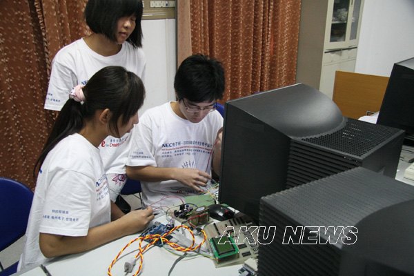 这次参加全国电子设计竞赛是我院首次组队参赛,经过前期动员报名,利用假期进行电子设计竞赛培训,最后通过选拔组成了一个本科队,4个专科队,每队3个共15人参赛。在电信系陈守满、王庆春等老师的指导下,队员们冒着酷暑,牺牲暑假休息时间,刻苦学习,精心准备。9月2日开赛以来,队员们在封闭的实验室里按照比赛规程努力工作,精选设计方案,精心焊接,细心调试,最终电子设计产品将于今天晚上送往西安。