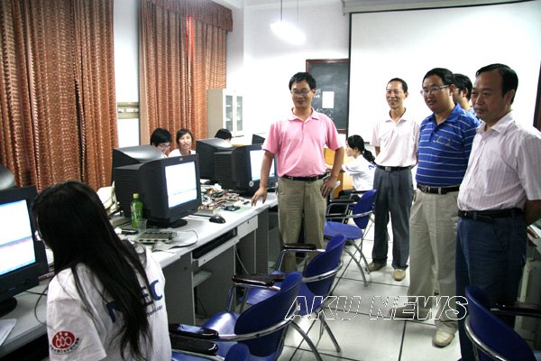 竞赛期间,学院副院长向继明在教务处处长单福东、学工部部长郑树清、团委副书记鲁延安的陪同下,到电信系电子工艺实训室看望了参加全国电子设计竞赛的队员们和指导老师。
