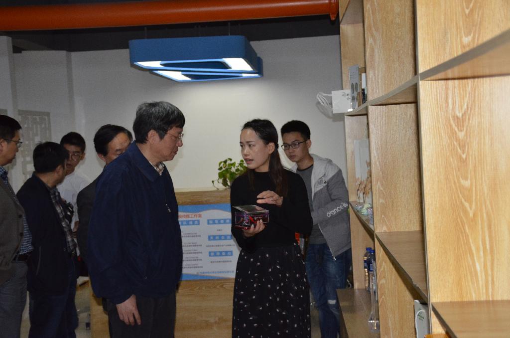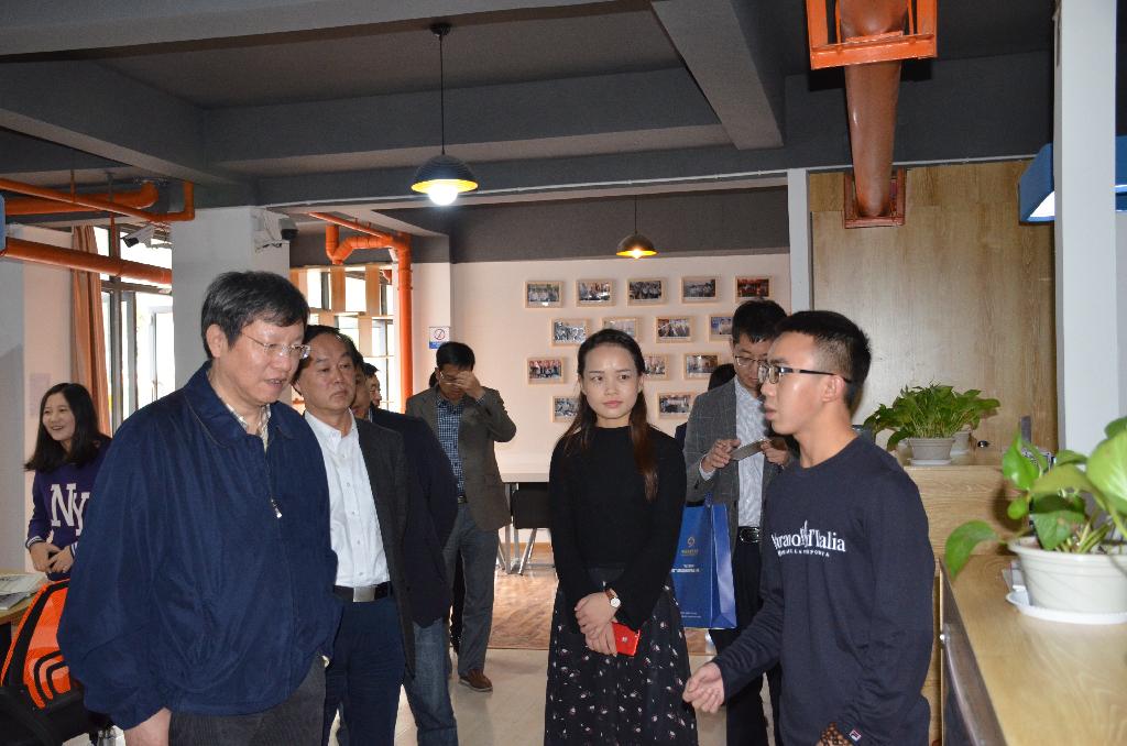 吴向一行先后参观了孵化园创客空间和创客街区。每到一处,吴向等都详细地询问项目实施情况和下一步打算,并耐心地和同学们进行交流。