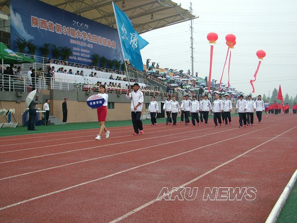 开幕式上,我院代表队第一个入场,走在所有代表队的前列,高高飘扬的校旗和运动员良好的精神风貌,引起了省教育厅领导、兄弟院校和观众的热情关注。