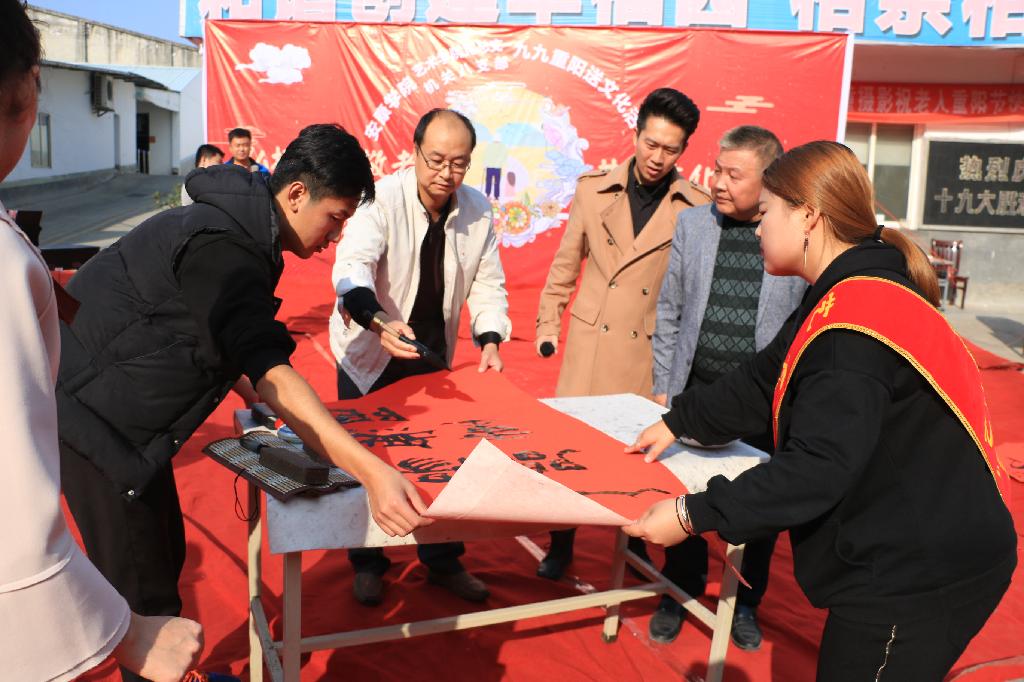 走进夕阳红老年公寓,全体党员和志愿者主动搀扶老人、帮助整理卫生、制作板报,并进行亲切交流。大家利用专业特长,精心布置舞台,认真编排和表演文艺节目。精彩纷呈的节目表演,赢得了在场老人的阵阵掌声和不绝称赞。活动现场,还给老人发放了重阳节礼物、撰写了书法作品。