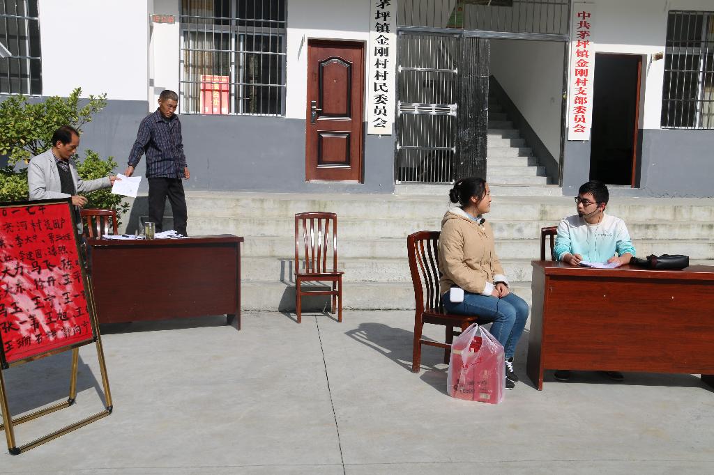 张岳、周伟、晏小雪、周凌玉四名同学向与会群众表演了我校自编自演的小品——《扶贫路上》,小品反映了月亮湾大学生村官在精准识别扶贫户时发生的一系列故事。村民李小菊在女儿大学毕后取掉了贫困户,想给村民委员会主任送酒补上贫困户,爱打麻将的单身大龄青年李铁树提着麻将问村民委员会主任,30岁单身为何评不上贫困户。作品生动刻画了当前农村扶贫工作中的现实问题,向群众宣传了党和政府的扶贫方针与政策,对与会的群众起到了积极的教育作用。