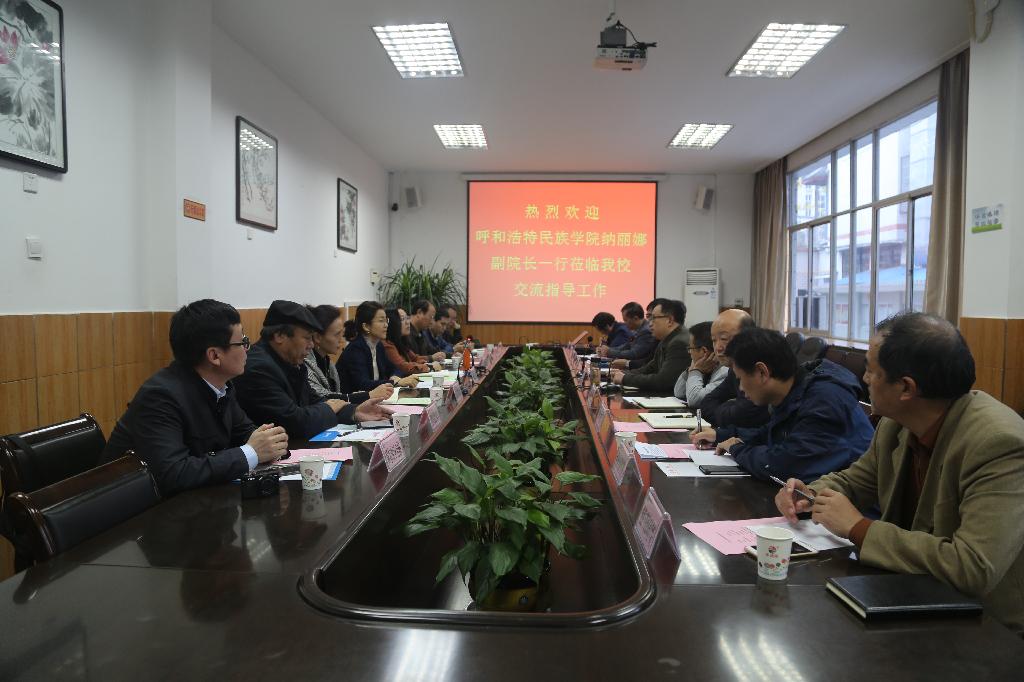 11月9日上午,呼和浩特民族学院副院长纳丽娜携学生处、就业处、法律系、经济系、环境工程系、传媒系、美术系等负责人一行7人来我校考察交流。副校长向纪明及相关单位负责人参加了座谈。座谈会由向纪明主持。