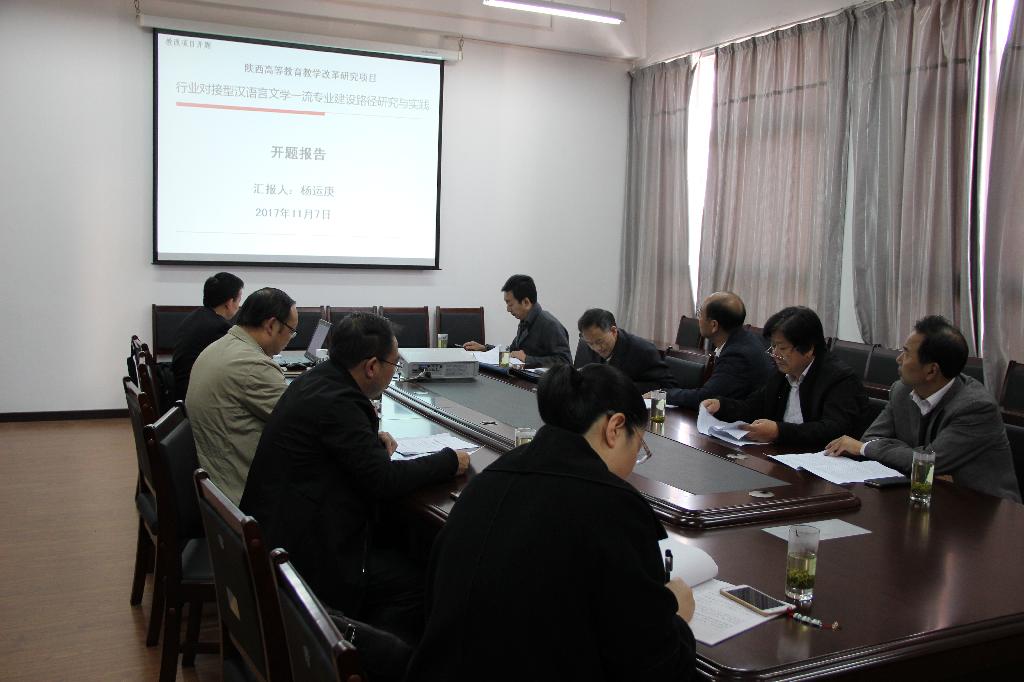 11月7日,何家理教授主持申报的《西部地区国培计划与送教下乡项目一体化研究与实践》项目(17JY022)和杨运庚副教授主持申报的《行业对接型汉语言文学一流专业建设路径研究与实践》项目(17BY101)分别举行了开题报告论证会,项目组成员参加了开题论证会。其中,邀请了陕西师范大学熊正英教授、陕西科技大学董文宾教授、宝鸡文理学院党天才教授及我校何家理教授和杨哲教授作为评议专家,对杨运庚副教授主持申报的项目进行了评审,会议由文传学院副院长梁卫华主持;项目主持人杨运庚就项目研究背景、研究内容方法,以及研究思路、工作分工、进度安排、经费预算等进行了汇报,项目组成员就相关问题做了补充;评议专家分别从一流专业评价指标体系制定、专业发展目标定位、研究路径选择、研究成果预期、研究内容及目标任务细化等方面提出了建议。邀请了陕西师范大学熊正英教授、陕西科技大学董文宾教授、宝鸡文理学院党天才教授及我校杨哲教授、胡景乾研究员作为评议专家,对何家理教授主持申报的项目进行了评审,会议由评议专家组长熊正英教授主持;项目组成员房春燕老师代表项目组对项目论证、设计做了汇报,她通过多媒体演示,就研究内容、技术路线、组织分工、工作进度、预期成果等进行了介绍;评议专家就“国培计划”与“送教下乡”的融合路径、如何选好“种子”、育好“苗子”,如何完善国培计划考核体系、提高国培计划项目质量以及项目预期成果等方面提出了质询和建议,并与项目组进行了深入交流探讨;何家理代表项目组做了表态发言。