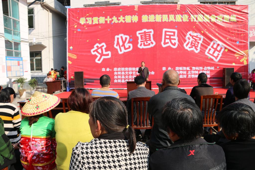 11月8日下午,在麻虎镇金银村的宣讲中,与县文广局的“文化惠民”演出同台进行;11月9日上午,在城关镇公路村开展宣讲活动时,《陕西日报》社记者吴丹对我校“扶贫扶志”和“党的十九大精神”宣讲活动进行了采风,并对何家理进行了采访,何家理介绍了我校在白河县开展精神扶贫和结对帮扶白河县扶贫攻坚工作以及党的十九大农村精神宣讲活动的开展情况。