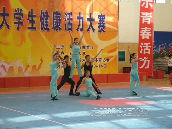 6月13―14日,陕西省大学生健康活力大赛在革命圣地延安举行,比赛分为普通高等院校组和体育专业院校组,设置了啦啦队、健美操、健康街舞三个大项和健康活力动感啦啦队套路、舞蹈啦啦队、健康活力健身操、健身健美操、竞技健美操、健康街舞、健康街舞自编套路等七个小项若干级别的比赛。26所院校160支项目级别队伍参加了本次大赛。