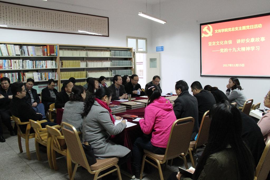 院长戴承元结合党的十九大精神,希望全院教师思考高校人才培养、科学研究、社会服务和文化传承的职能,深入理解“以我为主、兼收并蓄”的中国特色社会主义文化特征。一是在认识上要搞清楚传统文化、古代文化、中华文化的区别,要批判性继承,改造吸收;二是讲好安康故事,如自己从2003年就思考中文系如何服务地方文化发展的问题,挖掘整理地方志,搜集了各类非物质文化遗产材料,每年出版《安康文化》期刊,编辑年度文存,形成方言研究、地方民歌研究、家训校注等科研团队。最后,他强调,我们一定要不忘党员的初心,牢记知识分子的使命,坚定文化自信。