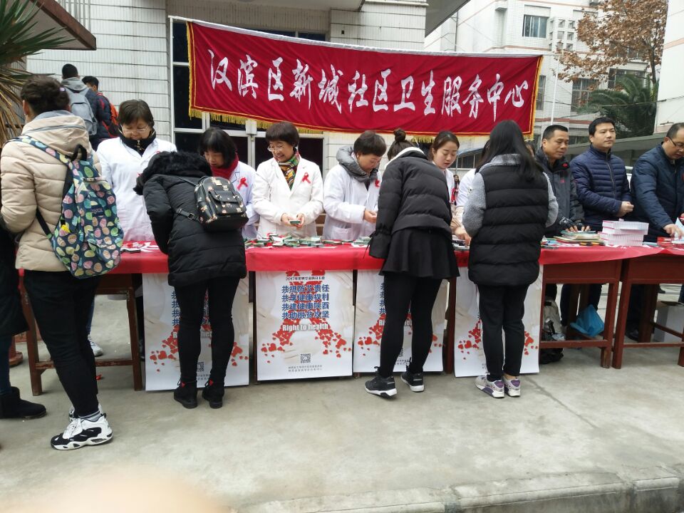 根据《学校艾滋病防治知识宣传教育全覆盖工作方案》及《安康市遏制和防治艾滋病“十三五”行动计划》文件要求,12月1日,我校联合汉滨区新城办,在江南校区开展了以“共担防艾责任 共享健康权利 共建健康中国”为主题的“世界艾滋病日”宣传活动。我校数统学院、化工学院及后勤保障处等500余名师生参加了本次活动。