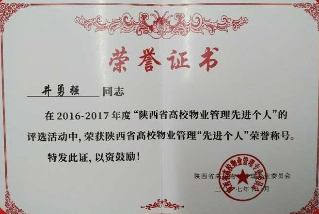 11月23日-24日,由陕西省教育厅后勤保障处、省物专会主办,西安建筑科技大学后勤集团承办,以“携手共进·开拓创新”为主题的陕西省高校物业管理专业委员会(2017)年会在西安召开。来自全省30余所高校的100余名后勤工作者参加了会议。我校井勇强被评为陕西省高校物业管理“先进个人”。