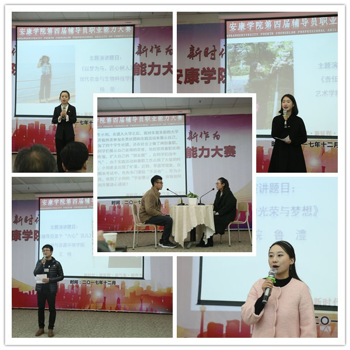 为学习贯彻党的十九大精神,落实高校立德树人根本任务,不断提升辅导员职业能力和专业水平,12月4日下午,以“走进新时代开启新征程、展现新气象实现新作为”为主题的安康学院第四届辅导员职业能力大赛决赛在图书馆报告厅隆重举行。我校党委副书记、纪委书记闵小平出席了大赛,学工部部长李岩、各二级学院党总支书记、校团委副书记兼学工部副部长李光梓、教务处副处长杨哲等担任大赛评委。全体辅导员和百余名学生代表现场观摩了比赛。