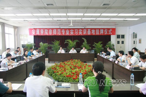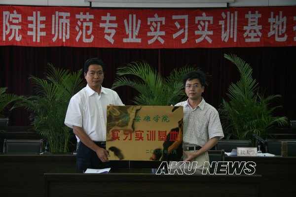 教务处处长单福东宣读了安康学院关于对非师范专业实习实训基地进行挂牌的决定和共建实践教学基地合作意向书。