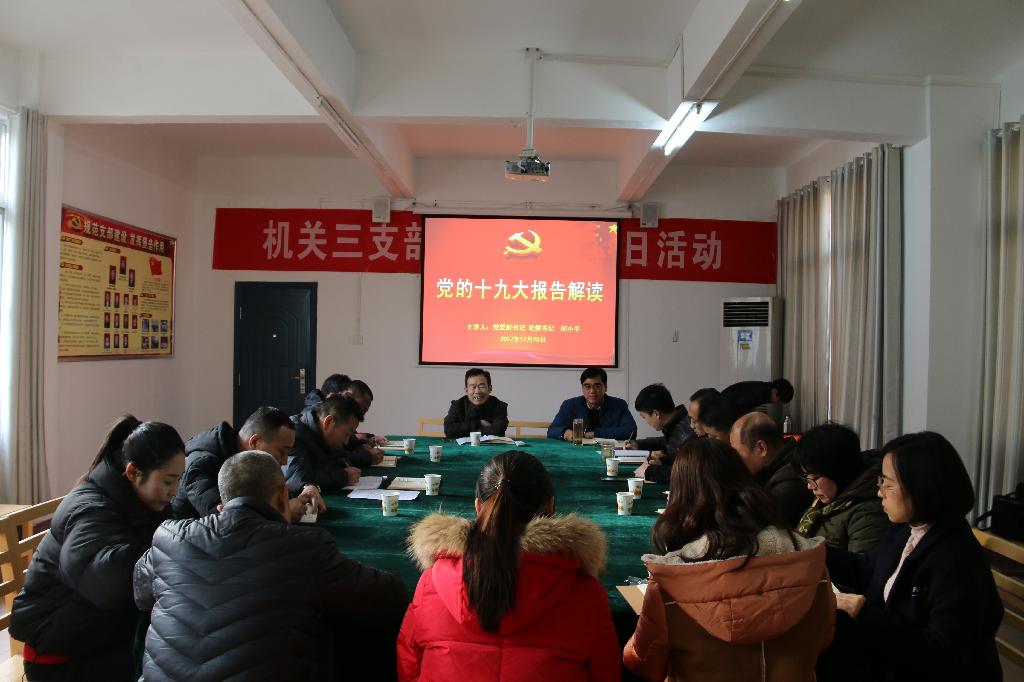 闵小平从“为什么要学习十九大报告”和“怎样学习十九大报告”入手,强调了学习宣传贯彻党的十九大精神的重要意义和方法。他指出,党的十九大报告围绕“不忘初心,牢记使命,高举中国特色社会主义伟大旗帜,决胜全面建成小康社会,夺取新时代中国特色社会主义伟大胜利,为实现中华民族伟大复兴的中国梦不懈奋斗”这一主题,始终站在人民利益的角度,向全社会、全人类进行了一次政治宣言,是全党全国和我们今后很长一段时间的行动指南。全体党员要跟上形势,必须要深入学习十九大精神,做到与时俱进;要学思做相结合,循序渐进,逐步深入领会十九大报告的精神实质。党员干部只有真正做到了政治、纪律、作风、道德、创新、家庭等方面修养的有机统一,才是将学习贯彻十九大精神落到了实处。