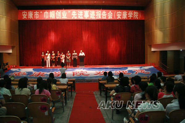 5月21日晚8:00,安康市“巾帼创业”先进事迹报告团走进我院,在西校区大礼堂为大学生做了精彩的创业指导报告。学院党委副书记胡鸿晓、安康市妇联副主席汤萍、学院工会副主席苏汉青、学生就业处处长丁义国出席了报告会,学院千余名女大学生聆听了报告。