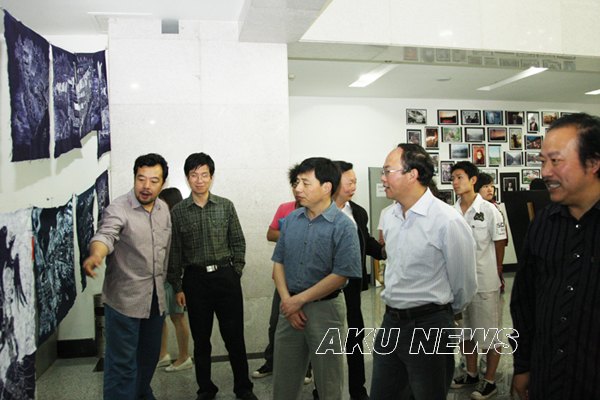 5月22日上午,书画大赛开幕式在我院图书馆举行。安康市文学艺术界联合会副主席罗荣厚、安康市群众艺术馆馆长周墙、安康市美术家协会主席李剑平、安康市书法家协会副主席李大斌、广播电视报社长李焕龙、安康学院党委副书记胡鸿晓、副院长杨行玉以及相关人员出席了开幕式。罗荣厚、李剑平、胡鸿晓、杨行玉为本次大赛剪彩。