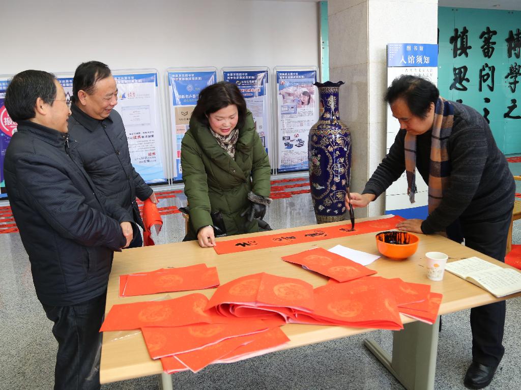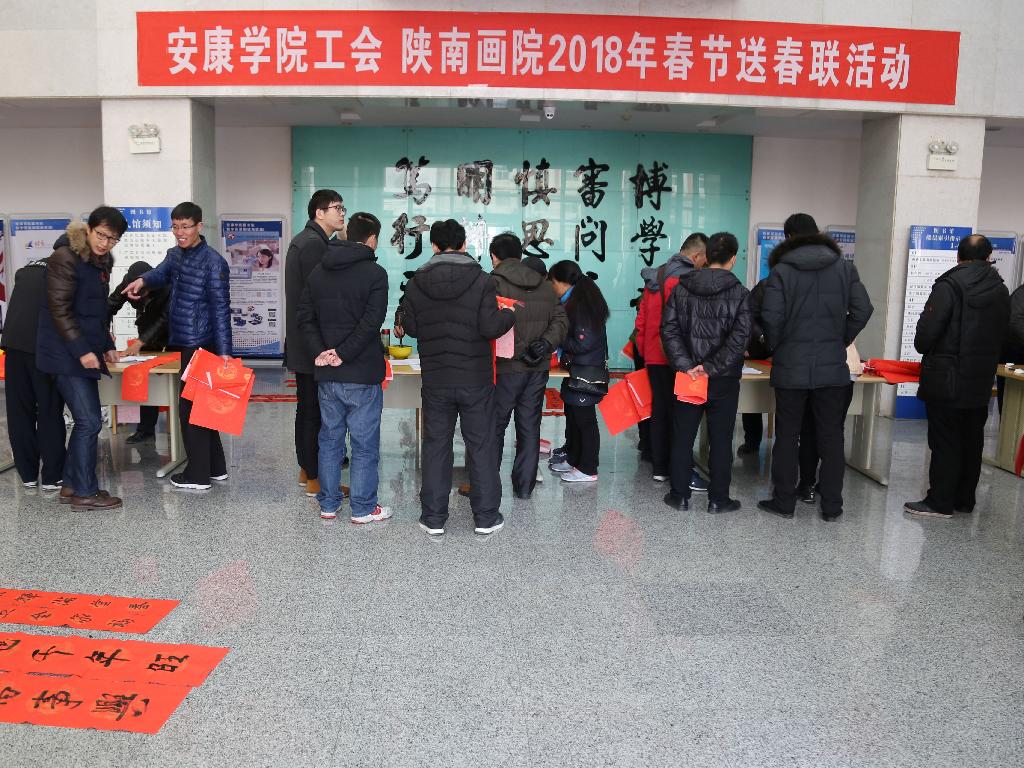 为丰富校园文化生活,营造节日欢庆氛围,弘扬民族传统文化,1月22日,校工会与陕南画院联合组织开展了为教职工义务书写春联活动。工会专职副主席王斌、陕南画院院长章长青及该院书法成员杨润波、张富华、张纪生、梅向东等同志参加了活动。