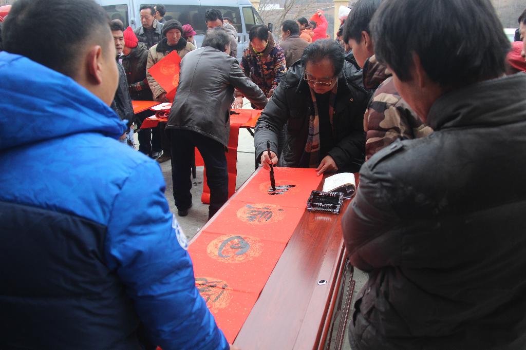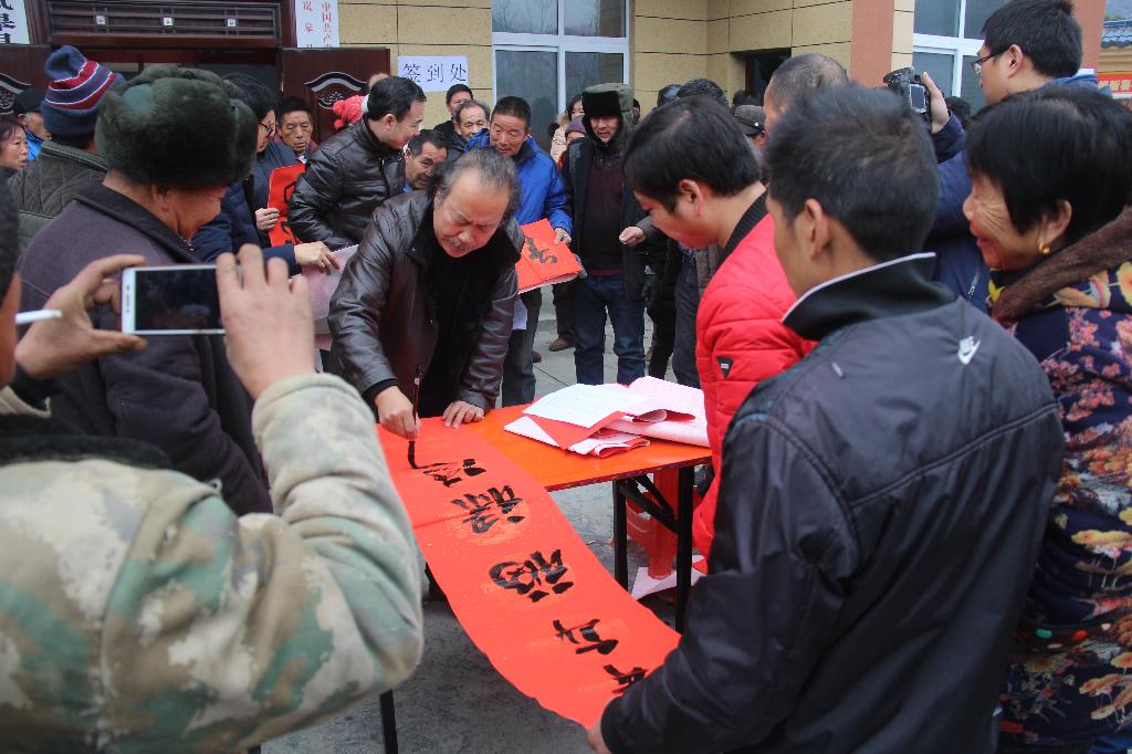 章长青、杨润波、张富华、张纪生、梅向东等书法家挥毫献艺,为全体村民书写了春联,扶贫工作队还为贫困户送上了春耕化肥。活动现场热闹非凡,村民的脸上洋溢着灿烂的笑容。