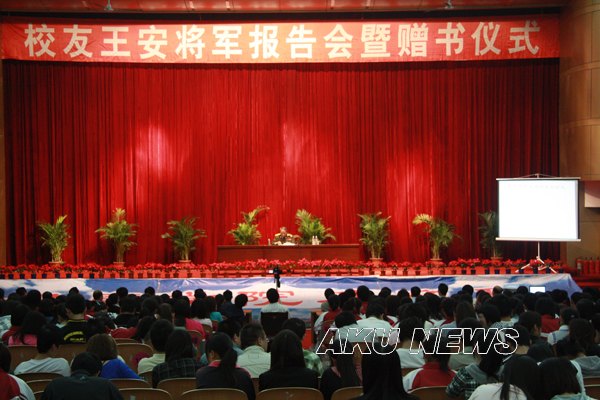 王安将军以“成长、成才、成就”为主题,以自己的成长历程及身边的生动事例阐述了“努力学习,勤于思考,勇于奉献”这三句话对大学生成才的重要性。他激励同学们要学会做人做事,学会求知学习,学会创新发展,学会交流沟通。在谈到母校时,王安将军深情地说:“我认为人生有三个母亲:一是生母,给了我生命;二是祖国母亲,给了我信念;第三个母亲,就是母校,给了我知识。母校是我终生受益和终生难忘的知识母亲,我永远也忘不了母校。”报告会不时爆发出热烈的掌声,王安将军的精彩报告赢得了同学们的热烈欢迎。报告会使同学们深受鼓舞,为他们的成长成才将起到有力地激励和指导作用。