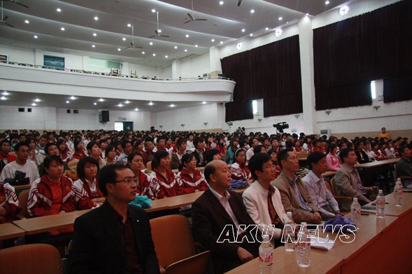 下午在西校区礼堂举行了报告会暨赠书仪式。参加报告会的有学院党委书记杨涛,党委副书记胡鸿晓,各院系党总支书记,相关职能部门负责人,以及1300余名学生。