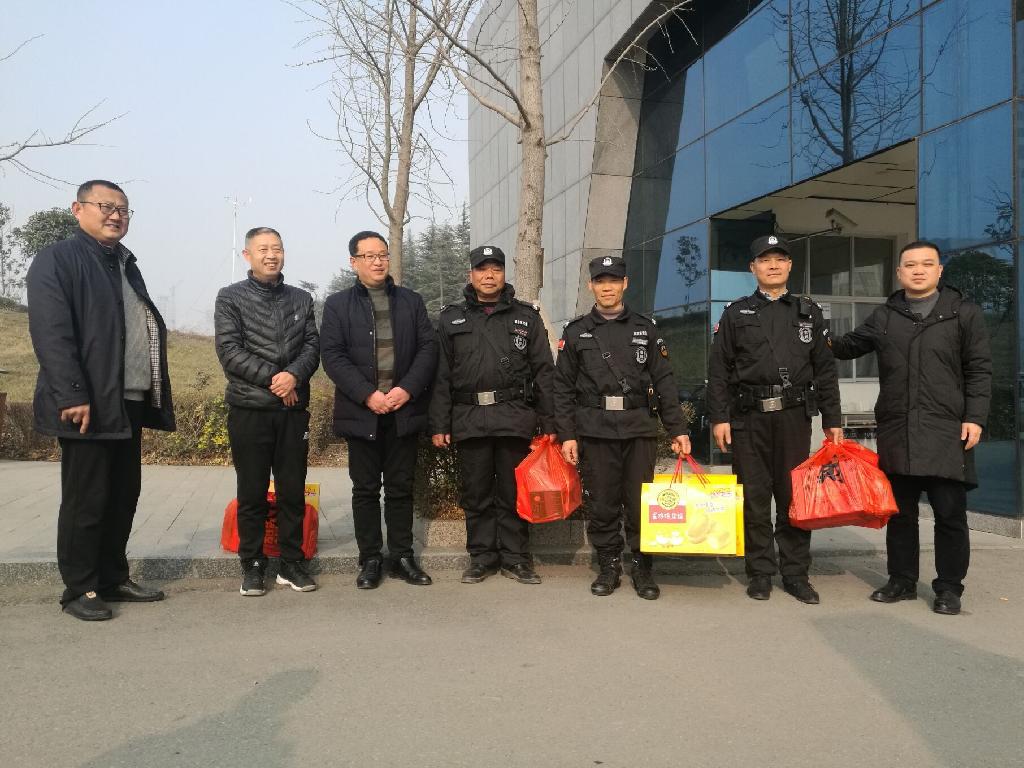 金鸡辞旧岁,瑞狗迎新春。2月16日(大年初一)上午,副校长向纪明在党政办、学工部、保卫处、后勤处等部门负责人的陪同下,先后到南、北校区亲切慰问辛勤值守岗位的工作人员,为他们送上节日的问候和祝福。