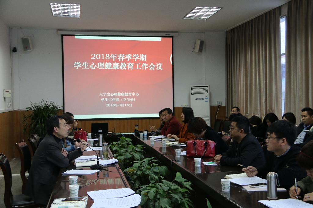 闵小平在总结讲话中充分肯定了过去一年我校心理健康教育工作取得的成绩,他指出,我校心理健康教育工作始终紧紧围绕立德树人的根本任务,着力实施大学生心理素质拓展工程,取得了较好的教育效果。针对2018年我校学生心理健康教育工作,闵小平提出了五点要求:一是要全面认识大学生心理健康教育工作的重要性和紧迫性,按照教育部印发的《高校思想政治工作质量提升工程实施纲要》中切实构建“心理育人质量提升体系”的要求,坚持育心与育德相结合,加强对学生的人文关怀和心理疏导。二是要研究培养学生健康心理的对策,把心理健康教育渗透到学校全方位育人工作中、融入到学校人才培养的全过程,促进学生心理健康素质与思想道德素质、科学文化素质协调发展。三是要切实加强心理健康教育团队建设,做到专题研讨会议的常态化,在交流互动中提高心理健康教育队伍的专业化水平。四是要积极开展第十一届“5.25”大学生心理健康教育文化节系列活动,多开展实效性强、贴近生活、更接地气的活动,增强活动的吸引力,提高学生的参与率。五是要准确把握我校学生心理健康教育工作的新形势、新特点和新问题,积极促进工作理念、内容和方法创新,以更有成效的工作,凝心聚力、砥砺奋进,不断推进我校心理健康教育工作新发展。
