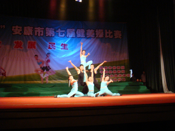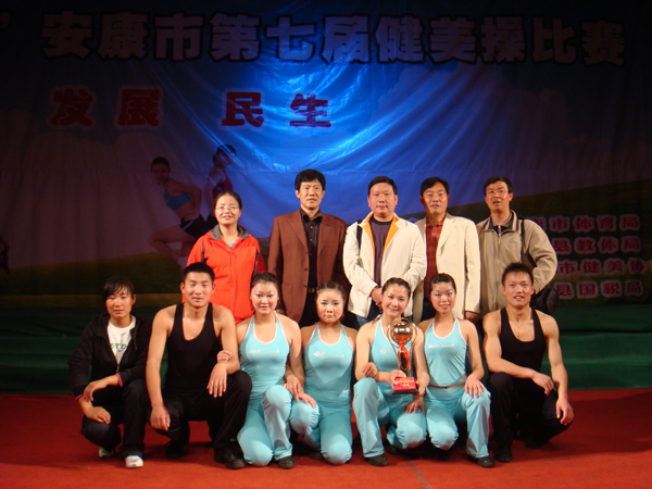 安康市第七届健美操比赛于四月十一日在平利县举行。我院受市体育局和市健美操协会邀请,组队参加了本次比赛。在教练马玉琴老师的指导下,队员们经过一个多月的刻苦训练,在比赛中以9.68分总分第一的成绩,获得一等奖,这是继前三届比赛后我院再次蝉联总分第一。