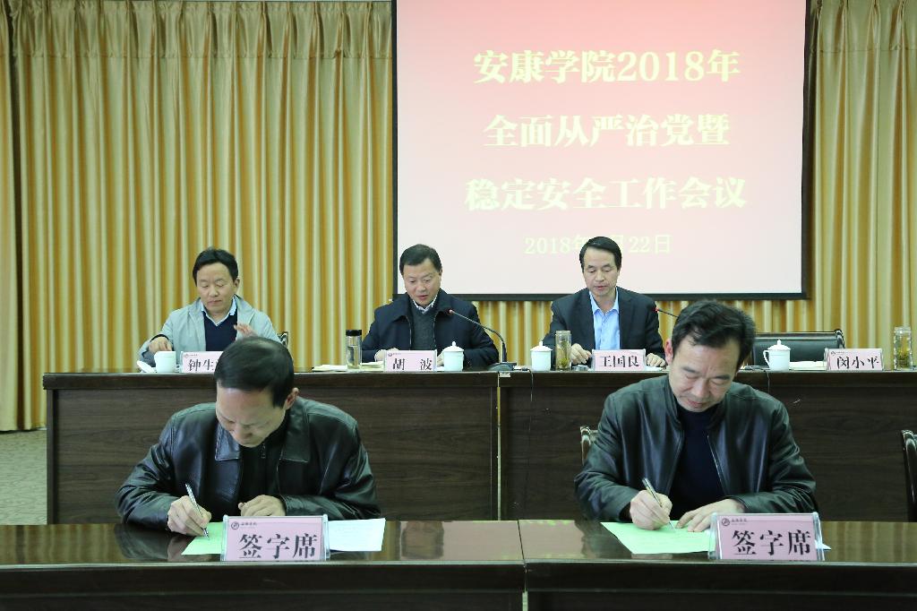 随后,党委书记王国良就进一步做好全面从严治党和稳定安全工作做了总结讲话并提出三点要求:一是要认清形势,提高政治站位,进一步增强对全面从严治党和维护校园安全稳定的重要性认识;二是要强化“两个底线”意识,进一步增强遵纪守规和维护稳定安全的自觉性;三是要完善工作机制,推动全面从严治党和稳定安全工作落到实处。他强调,全校各级党组织和党员领导干部一定要切实增强责任感、使命感,思想上要高度重视,行动要坚决贯彻落实好中、省委会议精神和决策部署,不断推动全面从严治党工作走向深入,积极创造学校和谐稳定的发展环境,保障和推动学校各项工作再上新台阶。