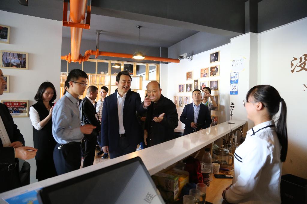 黄勇一行参观了创客空间、大学生创业实践区,对孵化园的功能布局、项目孵化流程、创业项目团队入驻等情况做了实地了解。王国良介绍了近年来我校大学生创新创业教育工作开展情况及取得的成效,招生就业处处长丁义国对孵化园的建设背景、运营模式、服务理念及未来规划做了专题介绍。