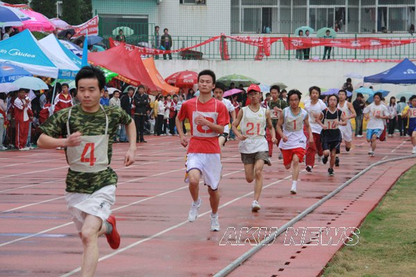 在为期三天运动会比赛中,虽然时有阴雨天气,但全体师生热情不减,各赛场依旧高潮迭起。运动员们不受恶劣的天气影响,在比赛中积极拼搏,奋勇争先,赛出了良好的竞技水平,在男子十七个项目、女子十六个项目的激烈角逐中,普通组和体育专业组共有9队次打破男女4X100米和4X400米院纪录,有17人次打破11个单项院纪录,是我院历届田径运动会中打破记录人数和项目最多的一届。农学与生命科学院代表团、经济与管理系代表团、外语系代表团分获团体总分第一、二、三名;政史系、外语系、电信系、化学化工系获得体育道德风尚奖;体育2007级代表队获体育专业组团体总分第一名。运动员们不惧艰难、积极向上的奋斗拼搏精神,充分展示了我院良好的运动水平和高尚的体育道德。