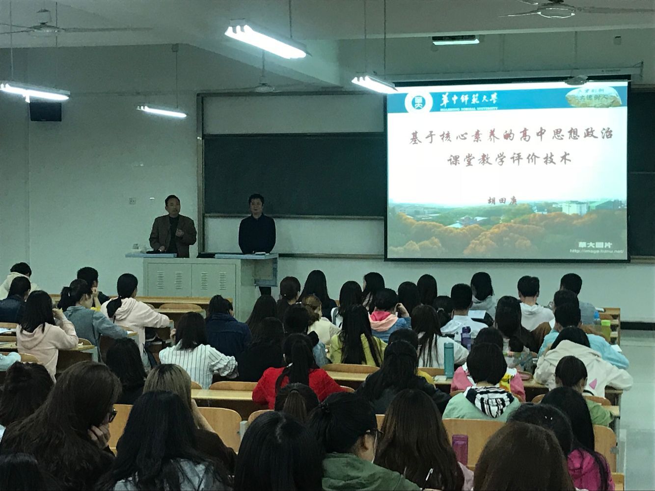 胡田庚教授围绕基于核心素养,以生为本、以学评教,为大家分析了课堂教学评价的新变化与新动态。就如何有效开展课堂教学评价,胡教授指出,要以动态的眼光、着眼发展功能,注意整体评价与片段评价相结合,全面观察与切片分析相结合。使该院师生进一步明确了教学过程要突显学科特征、凸显学生主体、关注探究过程、讲究教学实效、体现教学创新,有效推动了师生们以后的教学和学习进程。