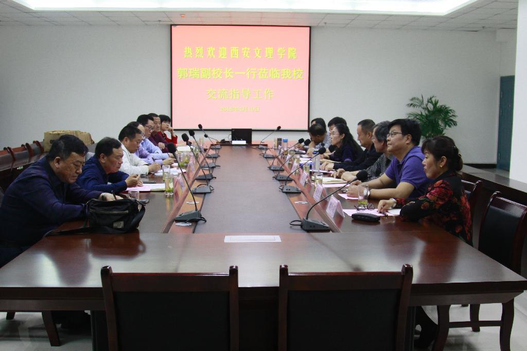 4月10日下午,西安文理学院党委委员、校务委员郭瑞带领保卫处、产业集团、离退处、培训中心、继续教育学院等部门负责人一行9人来我校交流工作。我校副校长杨行玉陪同郭瑞一行参观了江北校园。随后,在江北校区逸夫科技楼会议室主持召开交流座谈会,组织部、人事处(离退休工作处)、后勤保障处、保卫处、继续教育学院等部门负责人参加了座谈会。